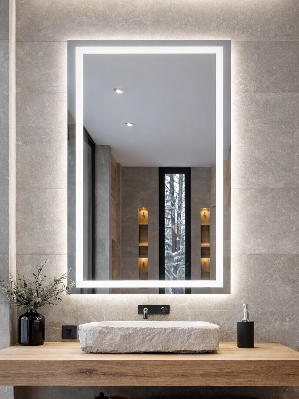 CategoriesБольшие зеркала, Зеркала, Зеркала в ванную, Зеркала в полный рост, Зеркала с подсветкой ⚡, Зеркало в ванную на заказ, Зеркало в полный рост с подсветкой, Зеркало с парящей подсветкой, Зеркало с подогревом и подсветкой для ванной, Зеркало с подсветкой в ванную, Зеркало с подсветкой в прихожую, Зеркало с подсветкой на заказ, Зеркало с подсветкой с сенсорным выключателем, Зеркало с фронтальной подсветкой, Зеркало с часами и подсветкой, Круглое зеркало с подсветкой, Прямоугольное зеркало с подсветкой